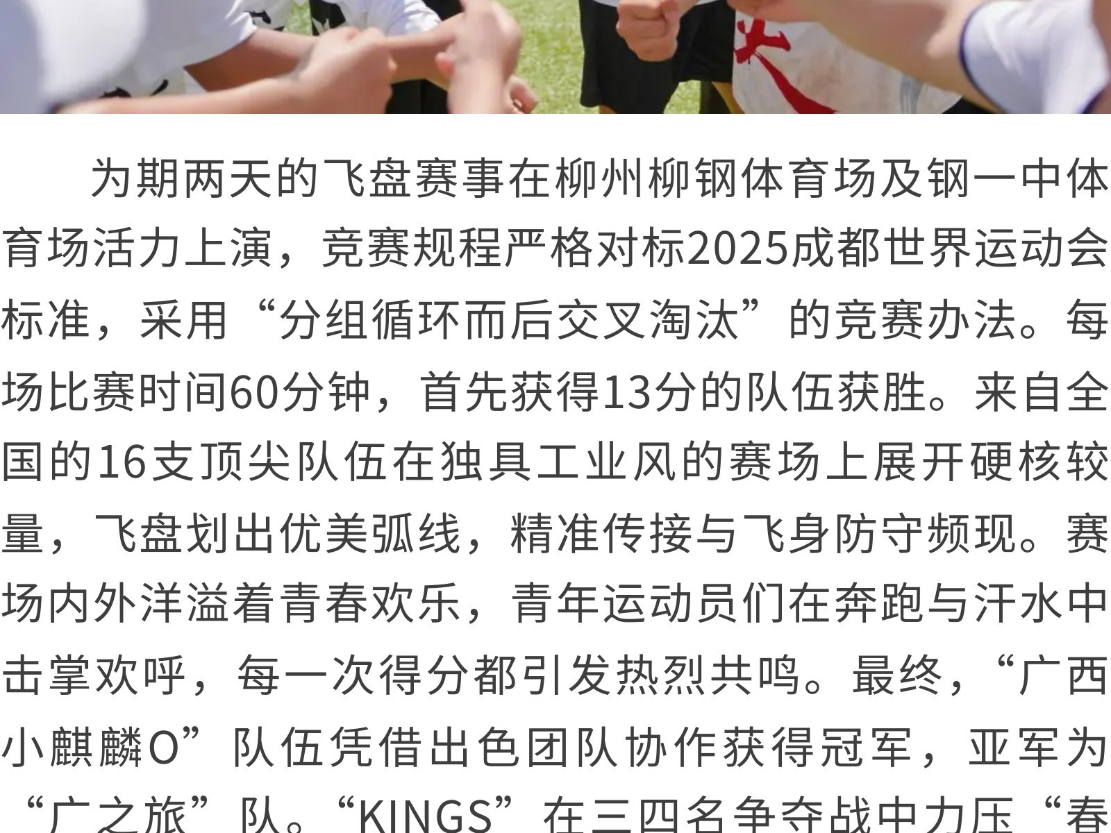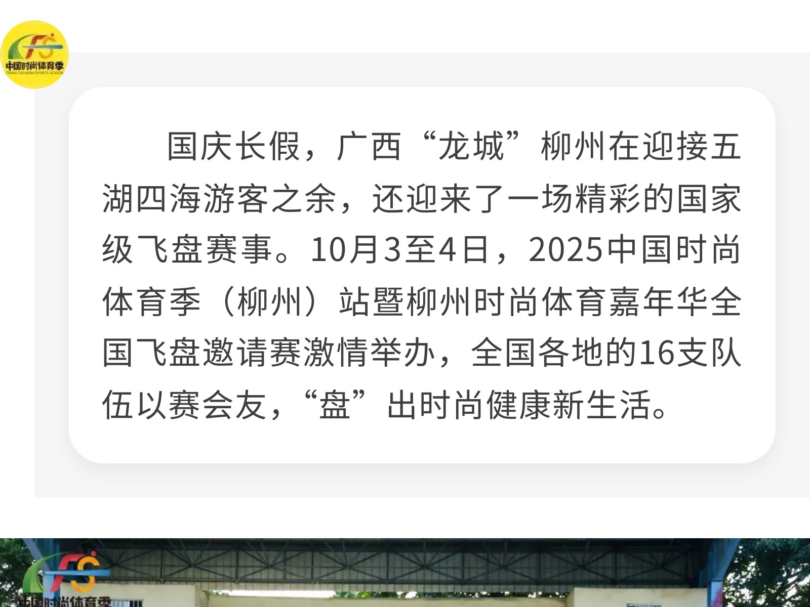 “盤”出時(shí)尚健康新生活,廣西柳州承辦國(guó)家級(jí)飛盤賽 發(fā)布時(shí)間:2025年10月05日 17時(shí)來(lái)源:本站原創(chuàng)瀏覽:24 人次
